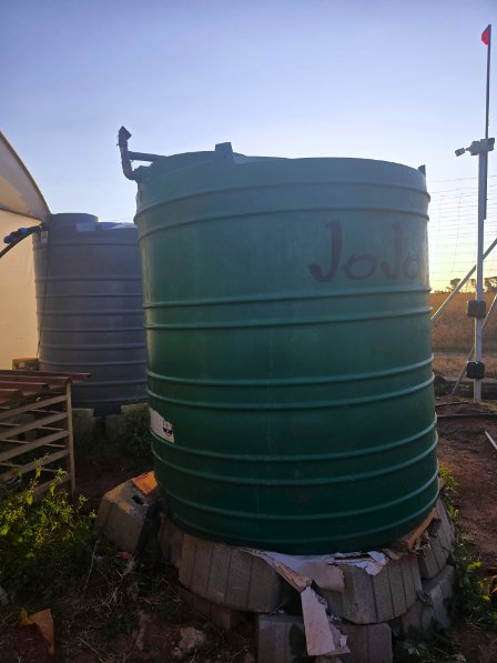 One 2500L Water tank with booster pump for domestic use.