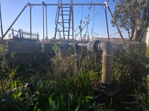 Original borehole, equipped with a submersible pump. Approximately 60m deep, estimated pumping capacity of 3,000L/H.