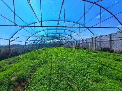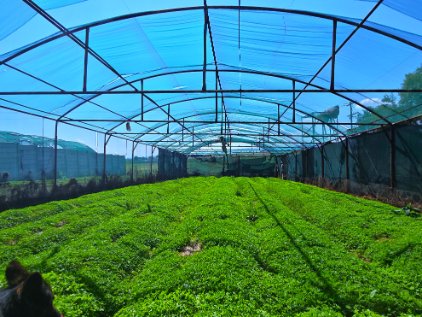 2 (10mx30m) Shade net covered vegetable tunnels with drip line irrigation.