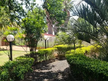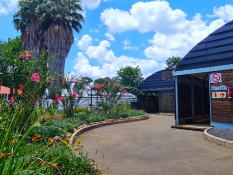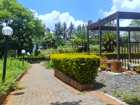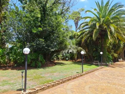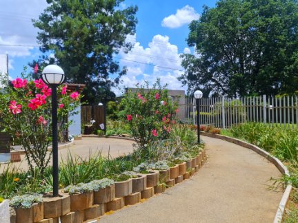 Tarred walkways and beautifully landscape flower gardens with garden lights.