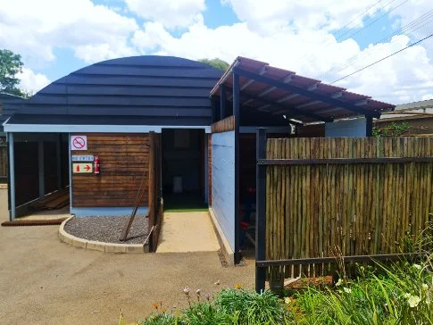 1m x 6m x 18m - solid tunnel frame tunnels covered with solid wood panels and an outside catering area with a satellite kitchen as well a Ladies bathroom and a rustic Gents bathroom.