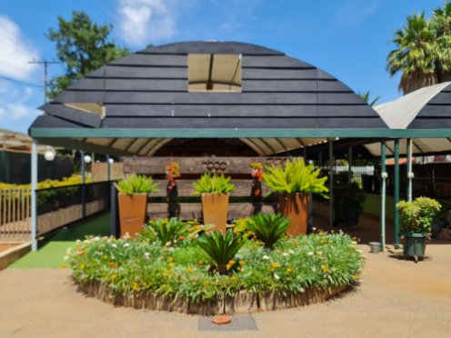 Large Koi Pond occupies the centre point of the business area and doubling up as the irrigation dam.
