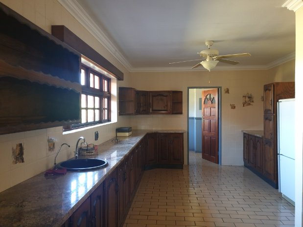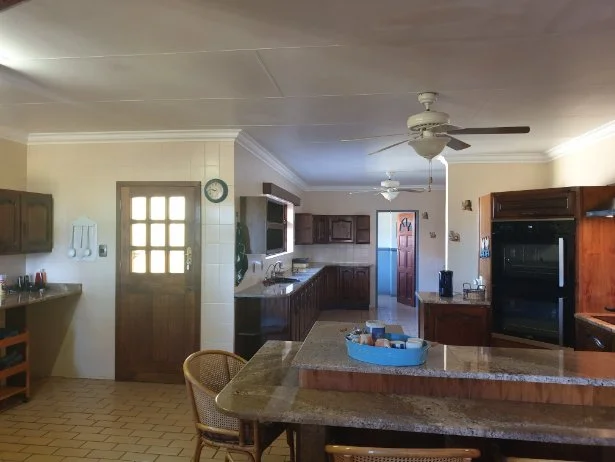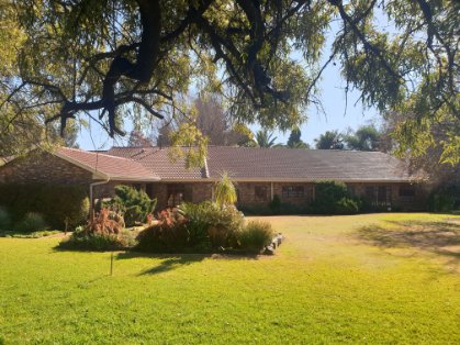 This beautiful irrigation farm offers a very spacious farmhouse featuring huge bedrooms all of which offer BIC, modern flooring and lovely views of the perfectly manicured gardens. The open plan dinning and kitchen are any entertainers dream! Space, space and more space…. En suit guest bedrooms and a lovely family room open out onto the patio were the water furrow runs through the garden before heading out to the massive fish rich ground dam…