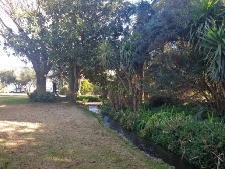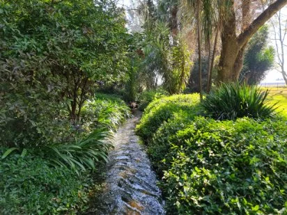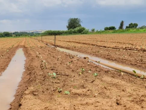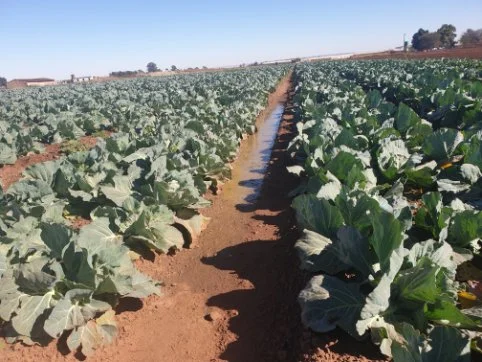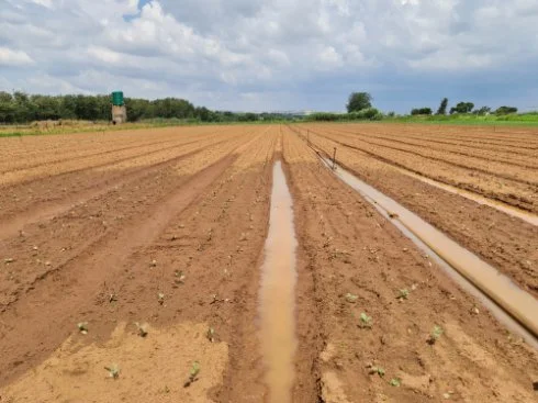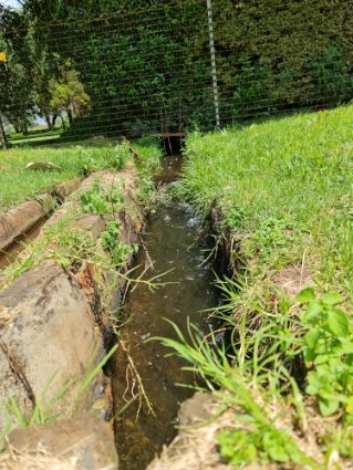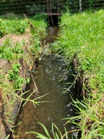 The furrows feed the dam and a 30 kw pump at the dam pumps the water that irrigates the property and land.