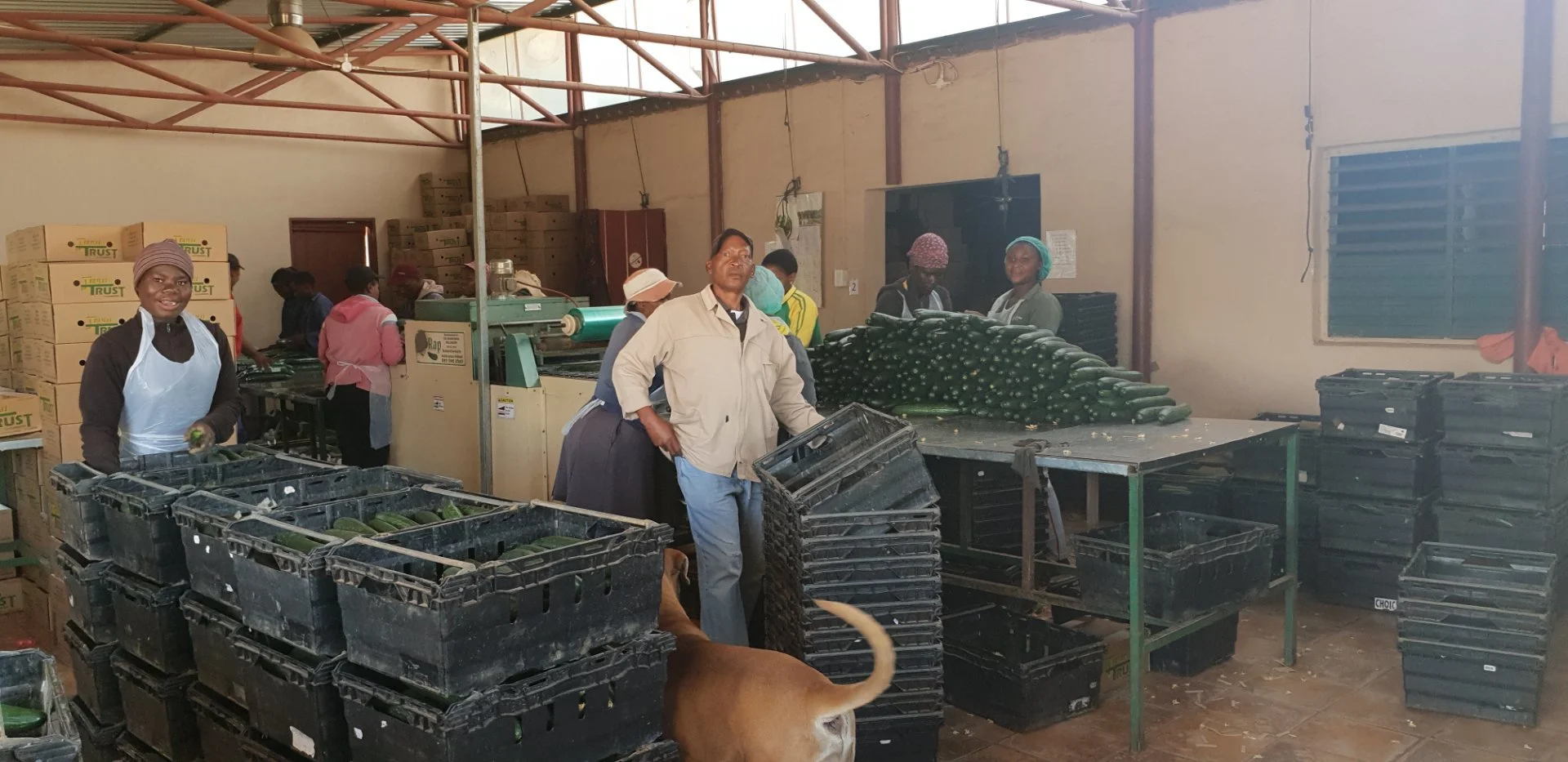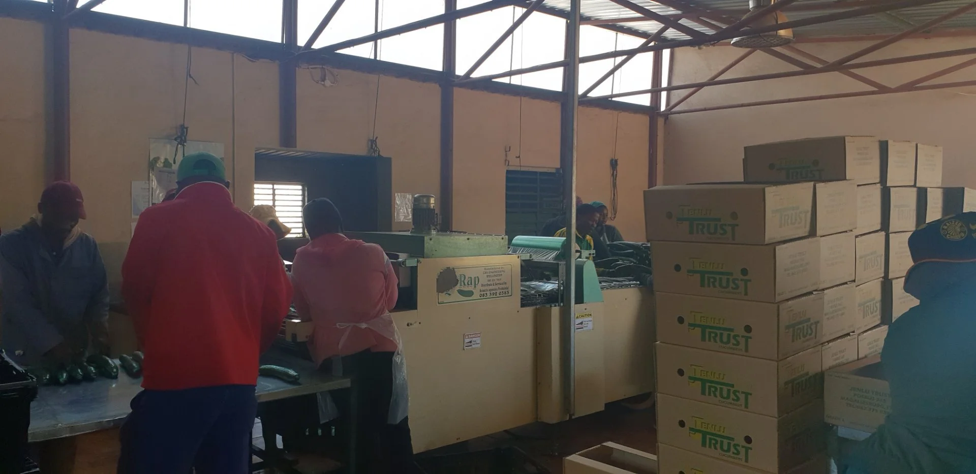 Fully kitted out with sorting tables and an automated cucumber wrapping machine (capacity to rap 3,000 cucumbers per hour)