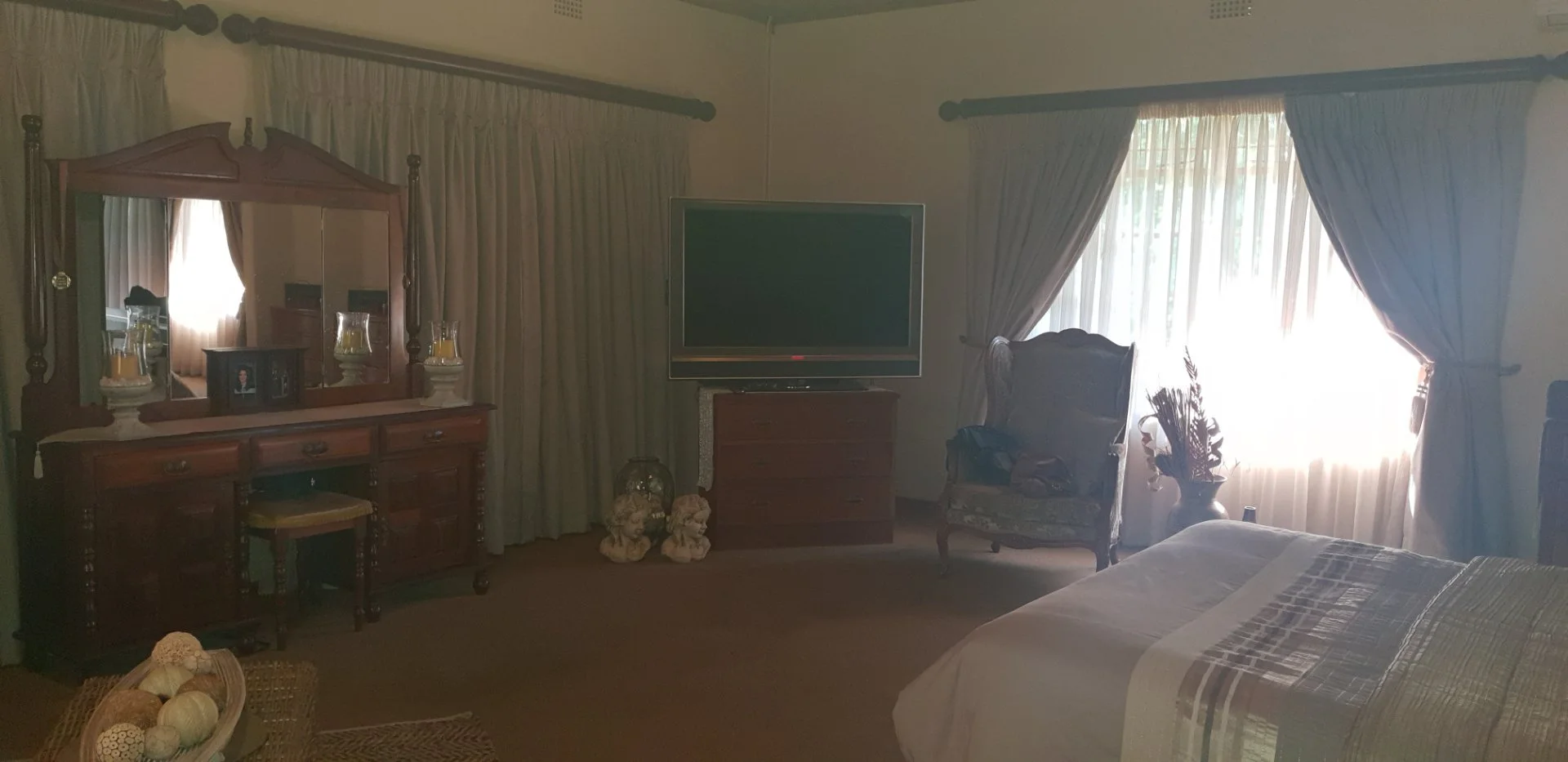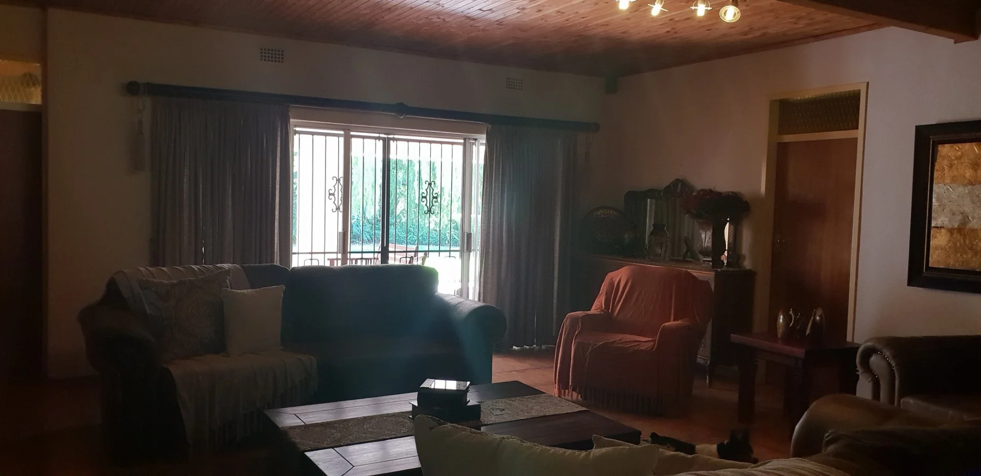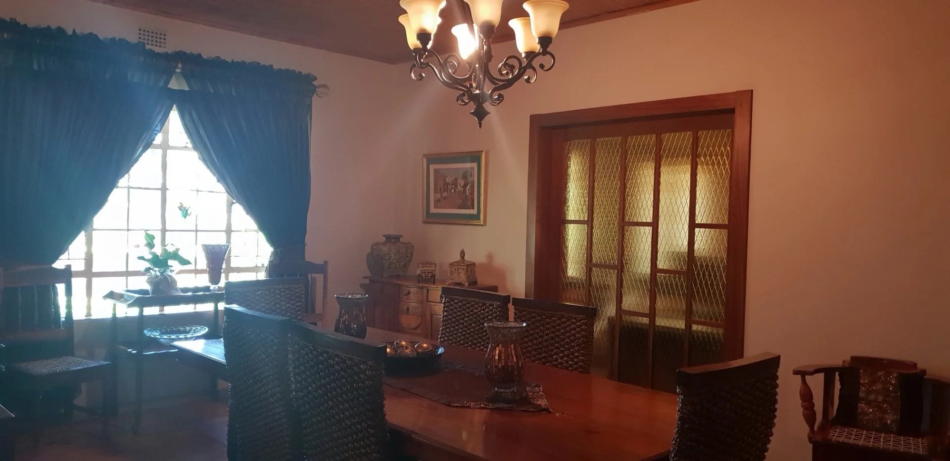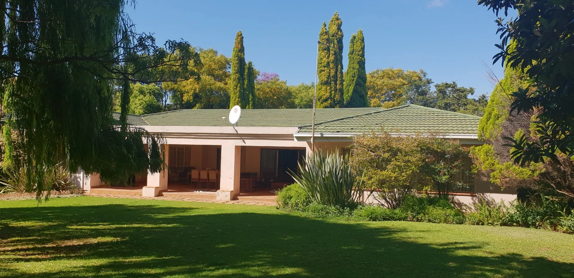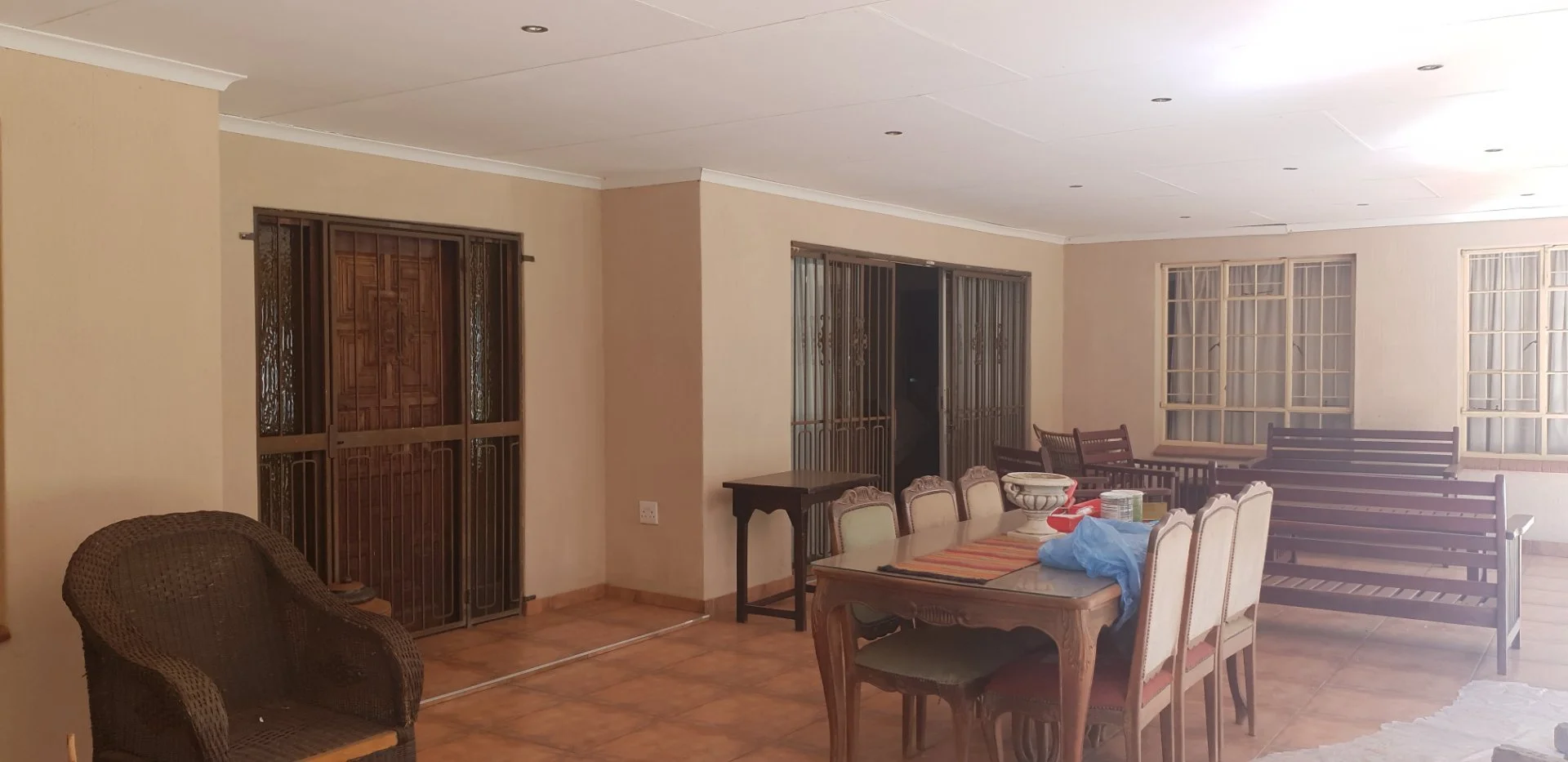 5 Bedrooms, 3 bathrooms, 2 linen rooms(storerooms), family room, lounge, dining, and kitchen. A lock up entertainment area with built in braai and bathroom.