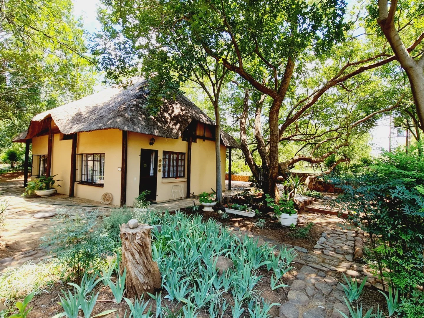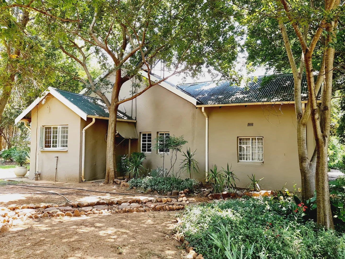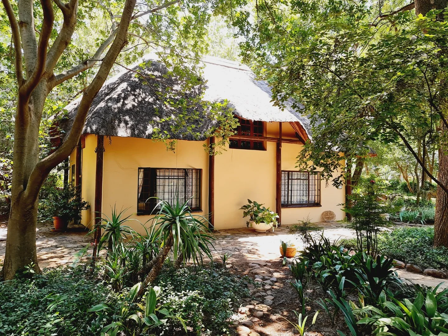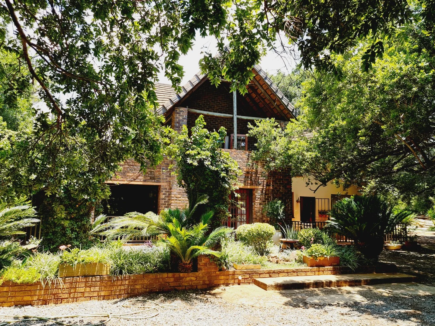 Set on 3.5 tranquil hectares with magnificent views of the Magaliesburg range, this charming property offers a rare lifestyle opportunity with strong rental and business potential. The estate includes two homes, a thatched cottage, a flatlet and staff accommodation, making it ideal for extended family living, guest rentals or a boutique wellness retreat. A large workshop adds practical value for business or hobby use, while the peaceful surroundings create a true countryside escape just off a tar road. The main home features a pool with a rock waterfall, and each dwelling offers its own unique character and privacy. With space, views and versatility, this property is perfect for those seeking a serene lifestyle with income possibilities.